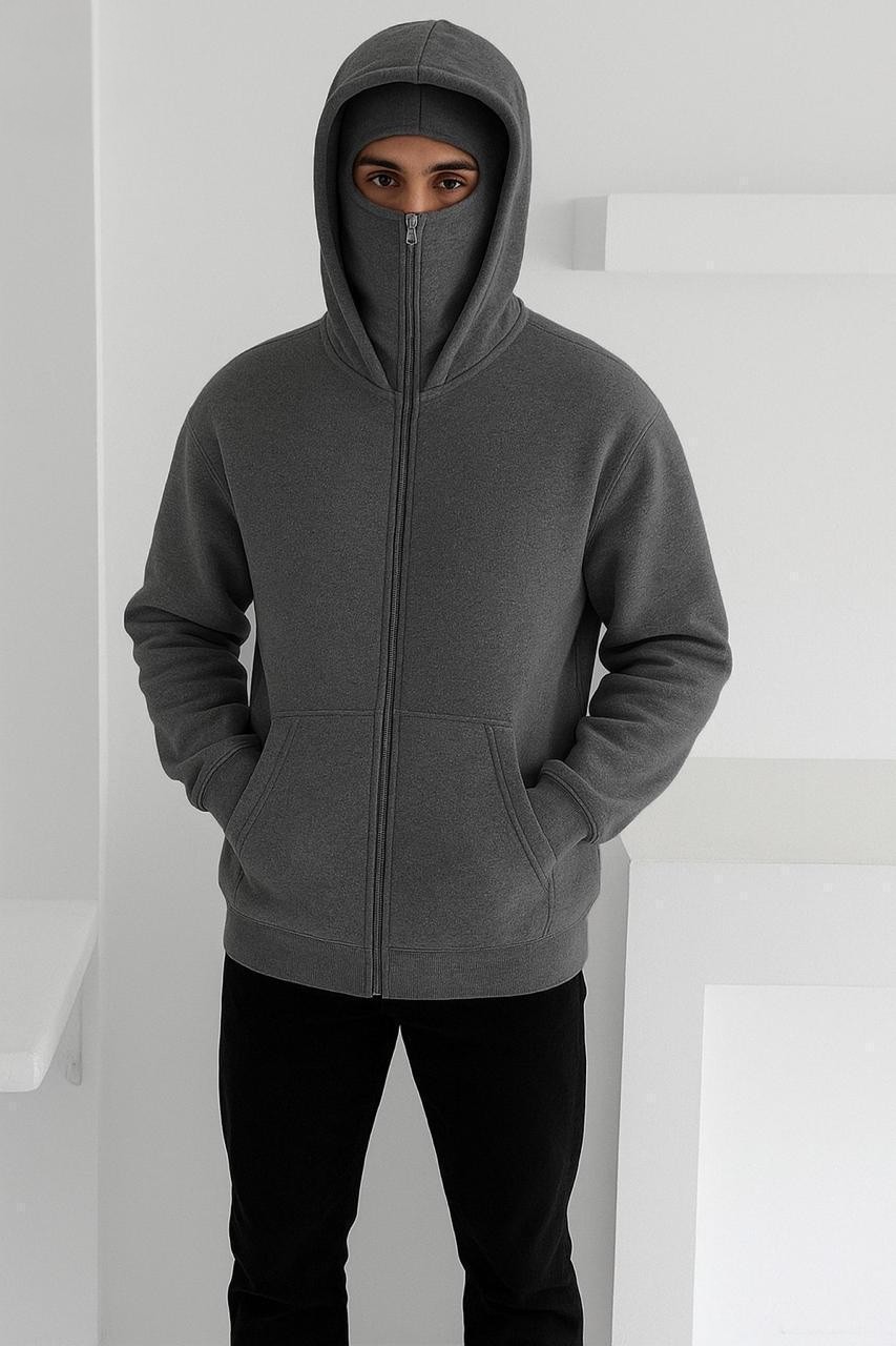 Premium fleece balaclava hoodie with built-in face cover, full zip design, and warm winter comfort—ideal for everyday and outdoor wear.